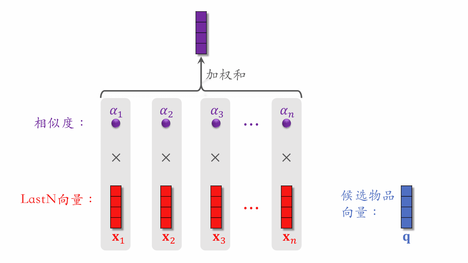 • 计算用户 LastN 向量的加权平均。